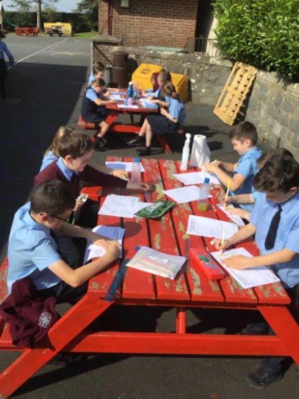 The pupils of Primary 6 and 7 enjoying the unusually good September weather by taking our learning outdoors! ☀ï¸ðŸ“